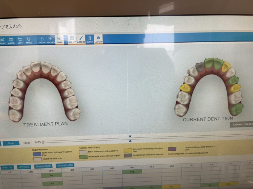マウスピース型カスタムメイド矯正装置(インビザライン)による矯正治療は、マウスピース型カスタムメイド矯正装置を1日20時間以上(目安)装着して歯を移動させる治療法です。1週間~2週間毎に新しい装置に交換します。