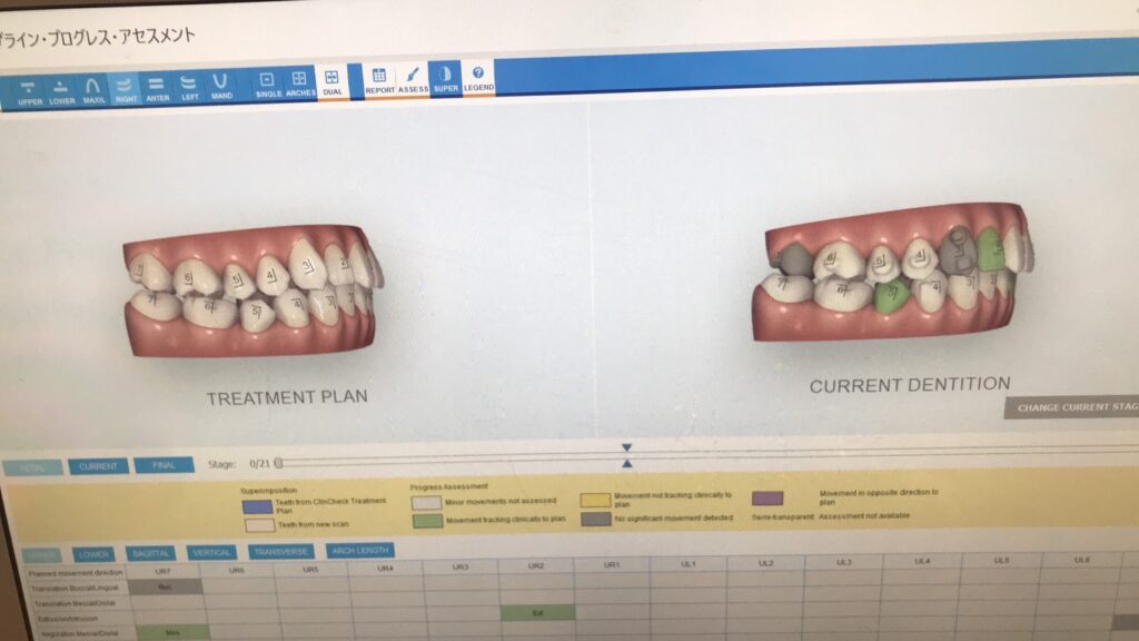 今回も経過をわかりやすく見るため、歯の列を光でスキャンして動きを見るプログレスアセスメントを行いました!